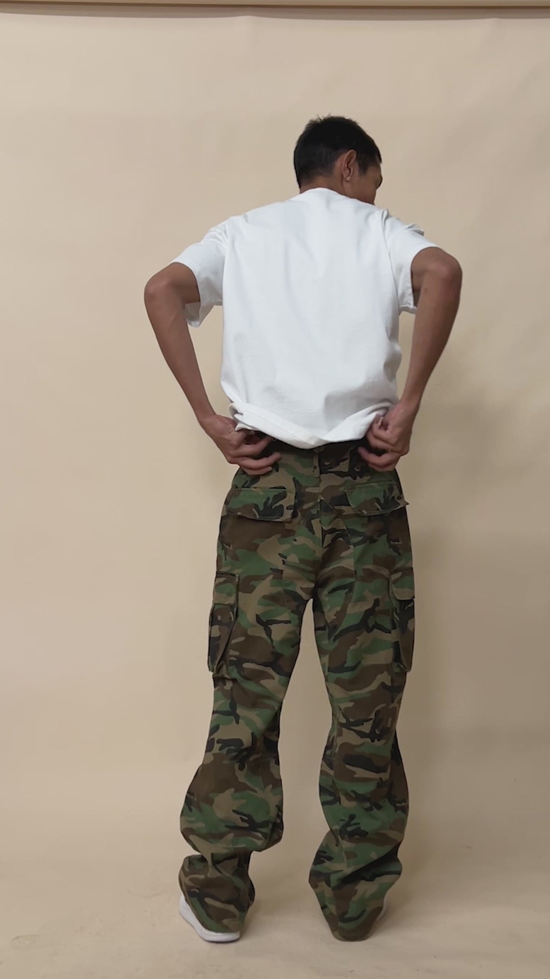 The Baggy Camo Cargo is the perfect fall pant. These cargo pants are constructed in a printed duck canvas with a relaxed fit and multiple cargo pockets.