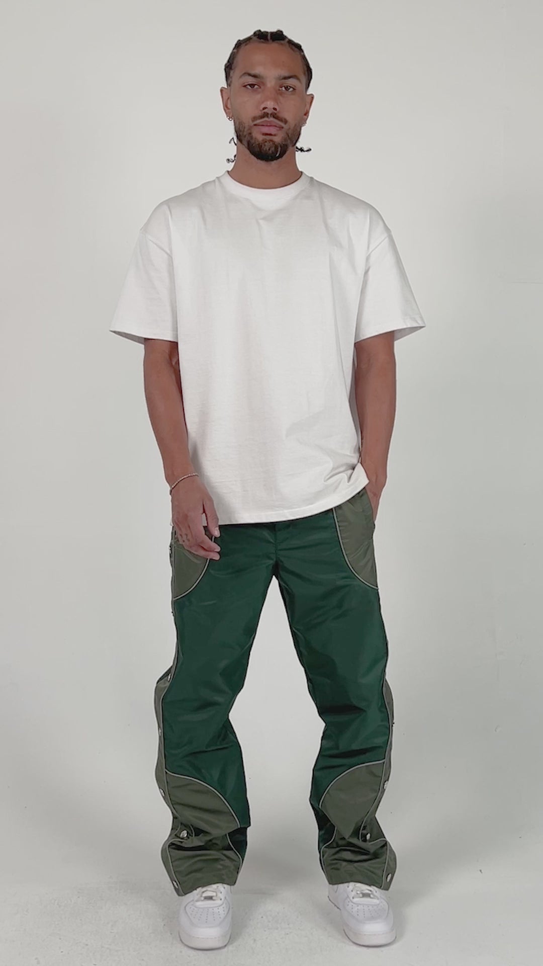 The Banga Pants are made with structured nylon in a relaxed flare silhouette for everyday wear. Designed with total color block paneling along the outer leg, they’re finished with logo embossed side snap button closures that allow adjustable styling and airflow.