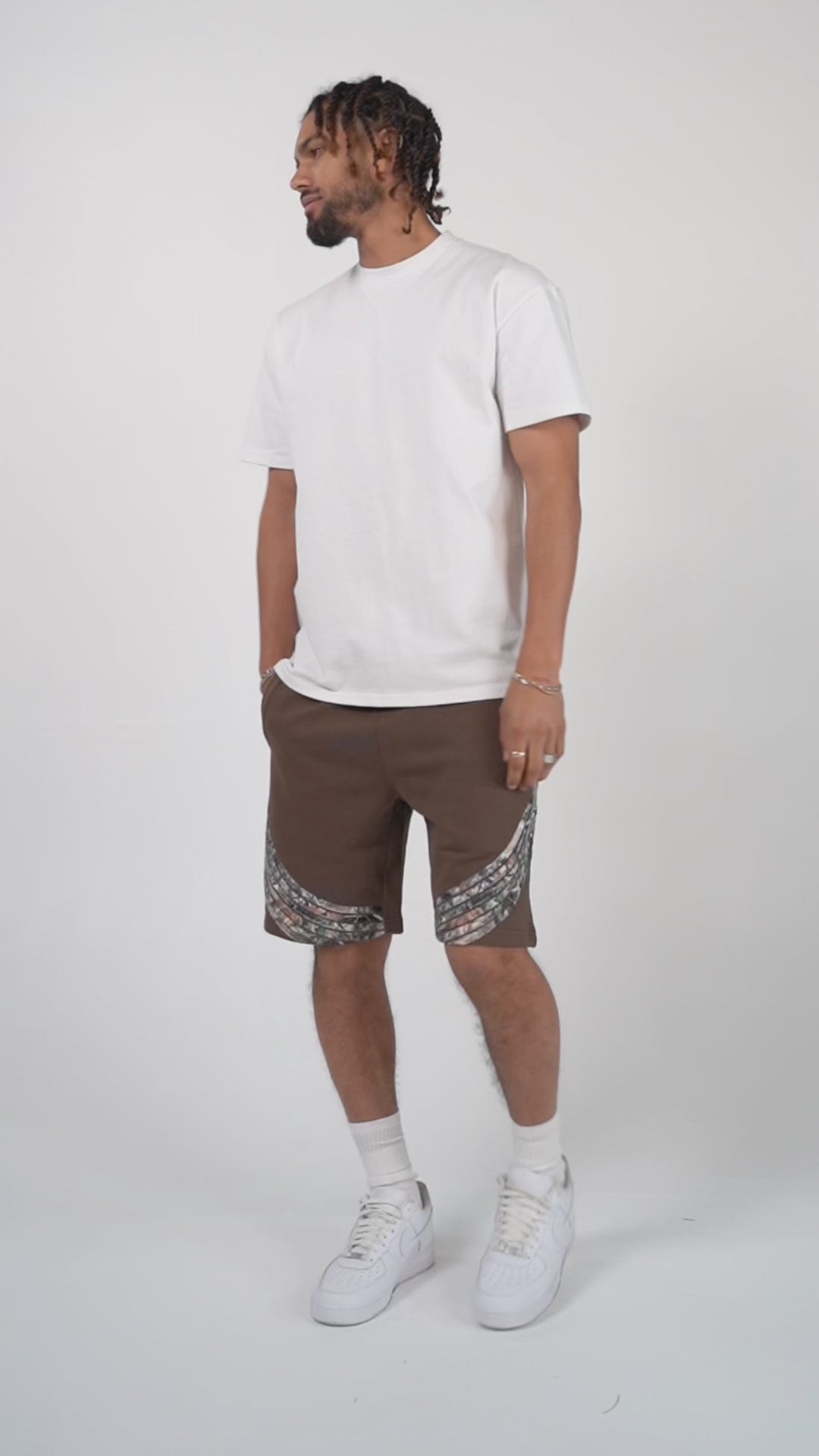 The Camo Highland Shorts are made with French terry fabric and accented with real camo tape details.