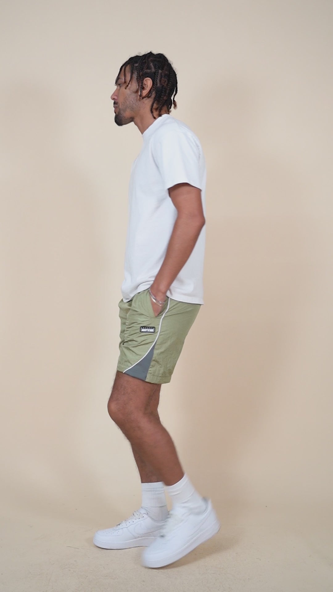 The Derby Shorts boast mesh jersey contrast with white piping and dual hem splits at the legs.