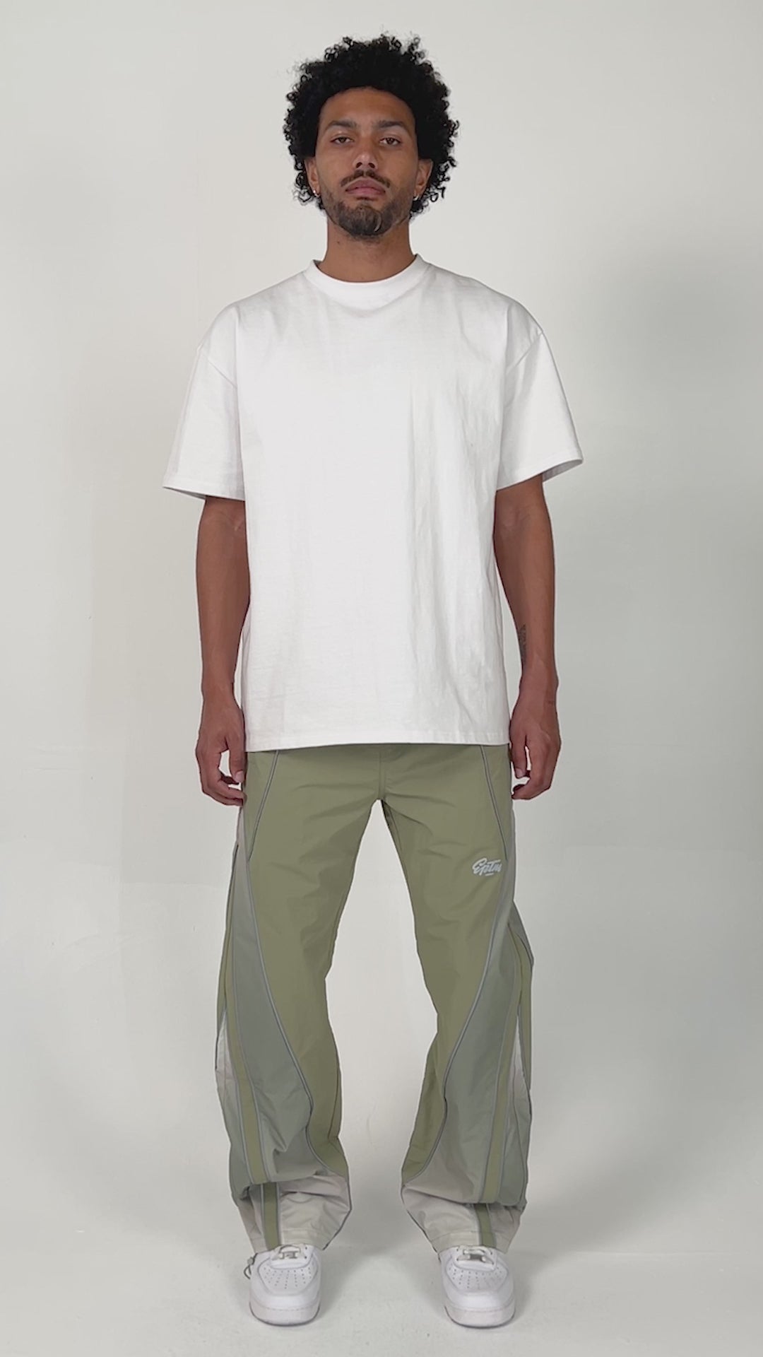 The defining characteristic of the Laguna Pants is the interplay between their organically shaped ombre panels and 3M reflective piping. The ombre print moves naturally across the contrast panels, creating a gradual shift in tone that feels considered rather than decorative. The reflective piping traces the design lines of the pant, adding a light-reactive element that surfaces with intention rather than demanding attention. Together, these details create a striking visual presence that remains elevated and calm. An elastic waistband and elongated drawcord allow for a precise, adjustable fit, while two side welt pockets and a back welt pocket provide functional storage without interrupting the exterior lines of the garment. The Laguna Pants are built for the person who wants their everyday wardrobe to carry a sense of depth and craftsmanship, worn consistently and with ease.