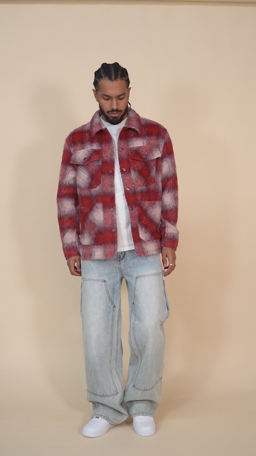 The Mohair Chore Coat is the classic work jacket with a new, mohair flannel spin. This jacket features front snap buttons and multiple pockets throughout.