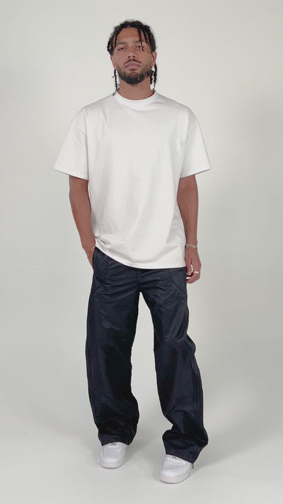 The Mono Track Pants is a baggy fit nylon pant, featuring tonal poly side stripes and piping details. These pants also feature an elastic waistband and adjustable hem.