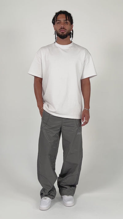 The Mono Track Pants is a baggy fit nylon pant, featuring tonal poly side stripes and piping details. These pants also feature an elastic waistband and adjustable hem.