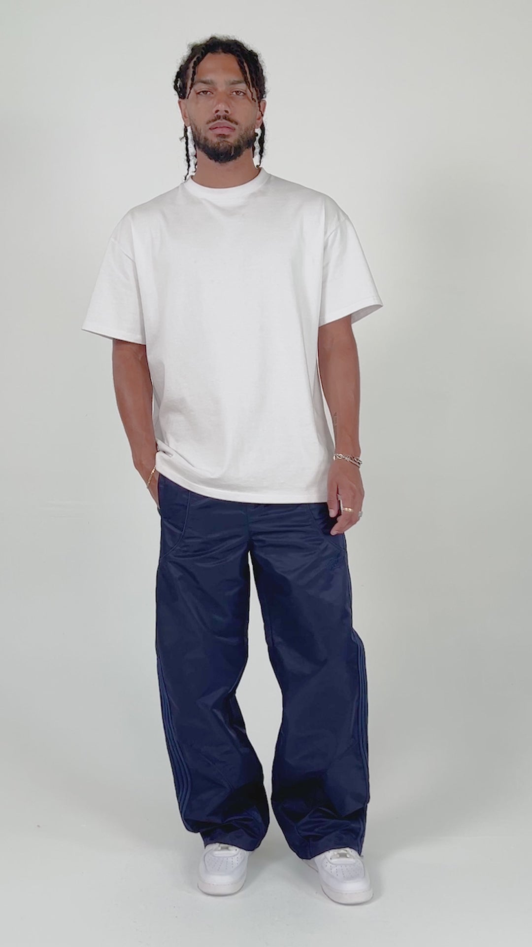 The Mono Track Pants is a baggy fit nylon pant, featuring tonal poly side stripes and piping details. These pants also feature an elastic waistband and adjustable hem.