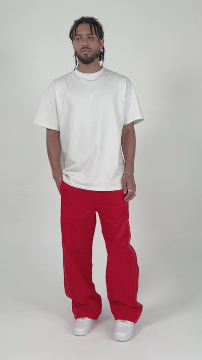 The Mono Track Pants is a baggy fit nylon pant, featuring tonal poly side stripes and piping details. These pants also feature an elastic waistband and adjustable hem.