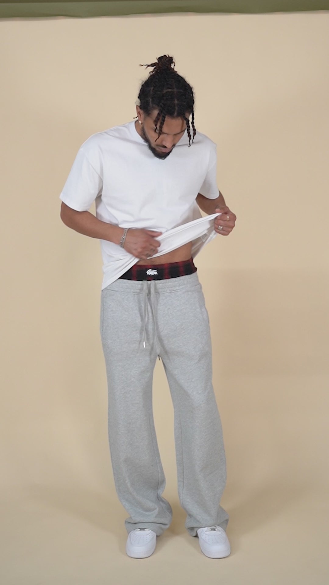 The PJ Pants are the perfect basic baggy pants for spring, featuring a double waistband with flannel patchwork to elevate your look. Made with french terry fabric.