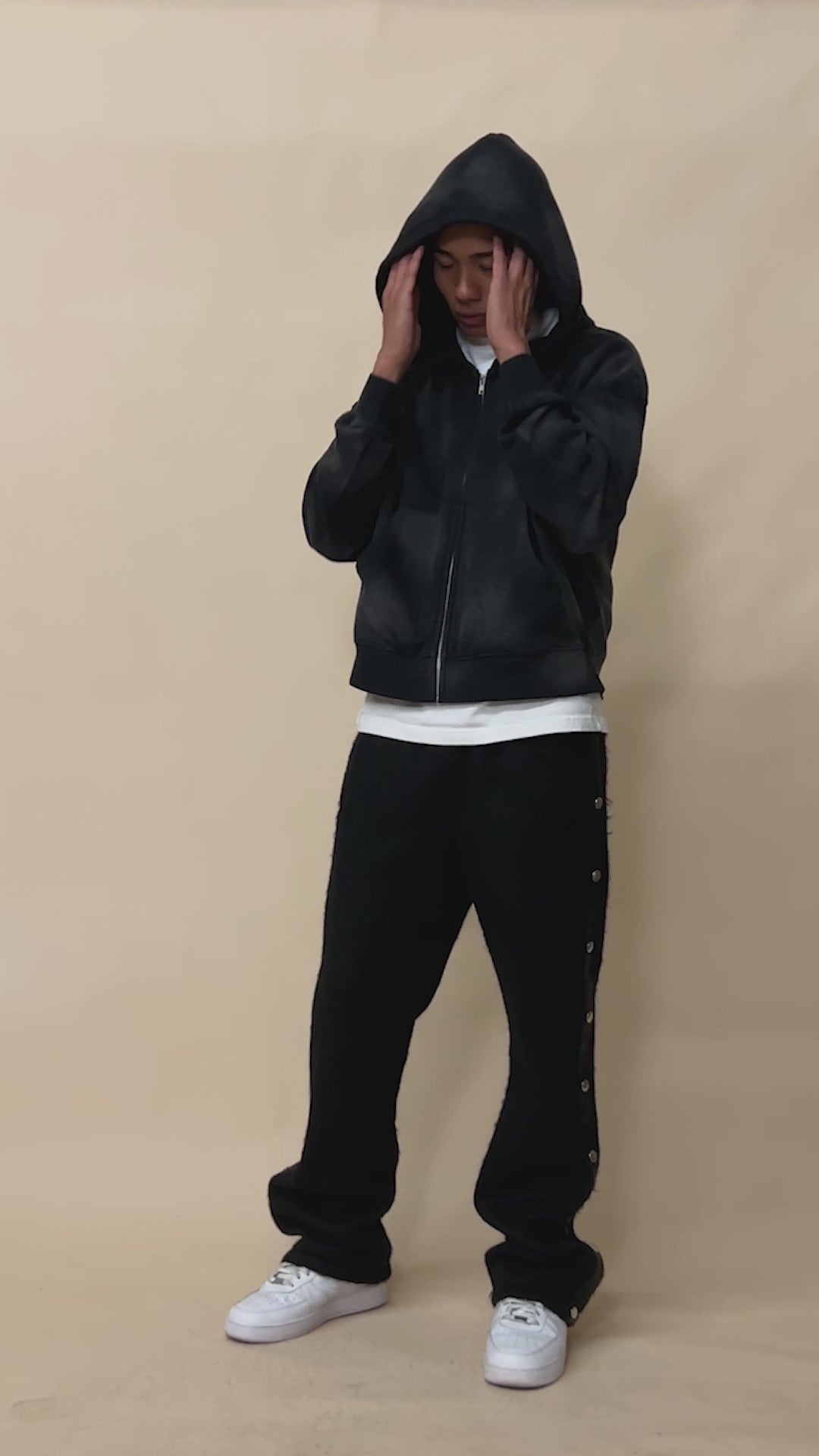 Elevate your wardrobe with our Sun-Faded Zip-Up Hoodie, where style meets exceptional comfort. Crafted from shrink-free French terry fabric, it features an oversized, cropped fit and uniquely irregular sun-faded patterns achieved through the dye process.