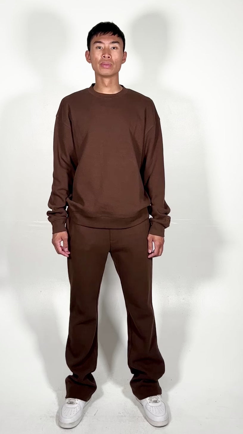 The Thermal Sweatshirt is gives sweatshirt vibes in a heavy thermal fabric. Pair these with the Thermal Flare Pants for a complete cozy look.