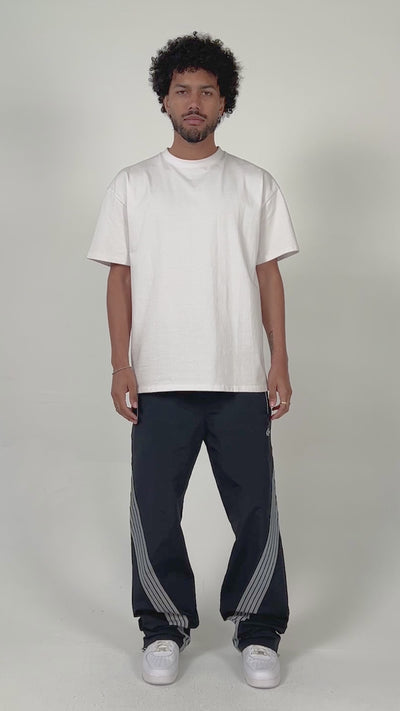 Where the VM Pants distinguish themselves is in the details: structured piping runs the length of the leg, giving the silhouette a defined, architectural quality that reads intentional without being loud. Reflective 3M tape hits are placed with precision, catching light in a way that adds dimension to the overall look rather than demanding attention. An elastic waistband with an adjustable cord and toggles ensures a dialed-in fit that moves with you, whether you are going from a morning errand to an afternoon meeting or layering into an evening look. The front welt pockets and back pocket round out the design with the kind of practical, clean utility that everyday wear should always offer. The VM Pants are not built for a moment. They are built to stay in your wardrobe.